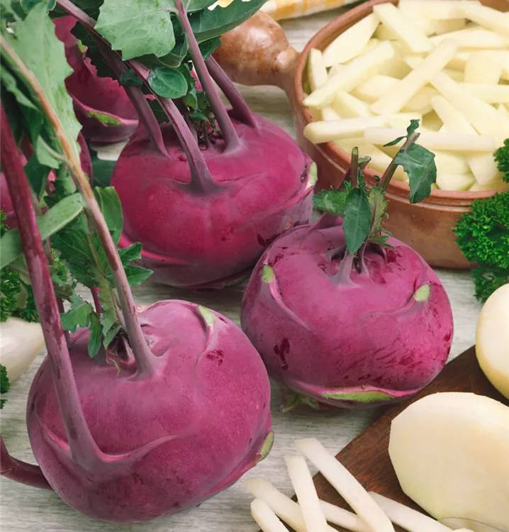 Der Kohlrabi (Brassica oleracea var. gongylodes) bildet Knollen, die aromatisch schmecken und bereits ab Juli geerntet werden können. Für das optimale Wachstum des Kohlrabis werden ein sonniger Standort und durchlässiger, nährstoffreicher Boden benötigt.