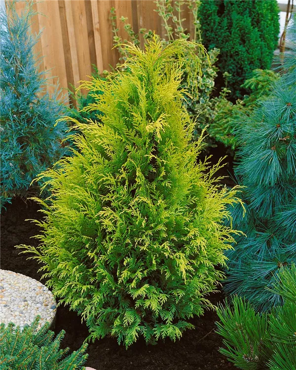 Chamaecyparis lawsoniana 'Stardust' ist ein Flachwurzler und bildet, je nach Boden, fein verzweigte Wurzeln.