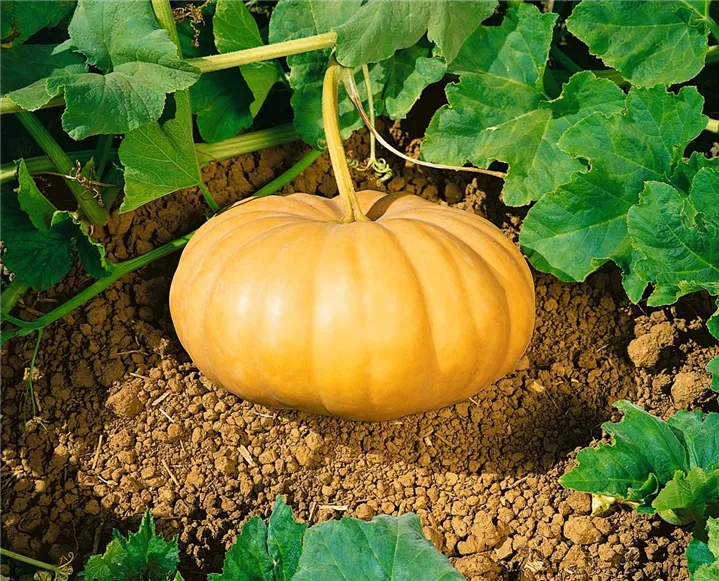 Der Moschus-Kürbis 'Long Island Cheese' (Cucurbita moschata) bildet Früchte, die aromatisch schmecken und bereits ab Juni geerntet werden können. Für das optimale Wachstum des Moschus-Kürbises 'Long Island Cheese' werden ein sonniger Standort und durchlässiger, nährstoffreicher Boden benötigt.