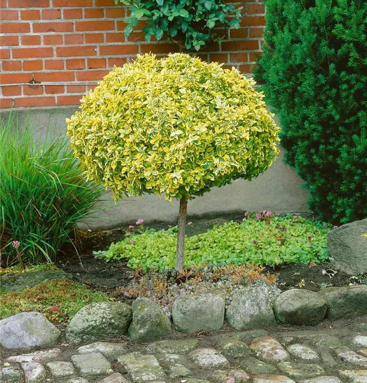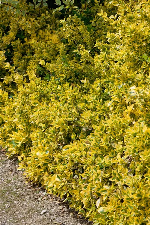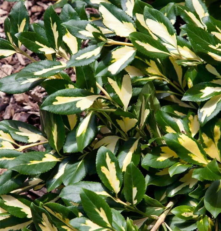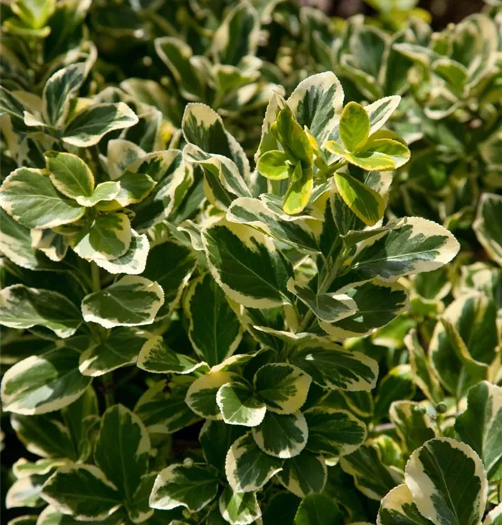 Die Kriechspindel (Euonymus fortunei) ein Kleinstrauch, der, je nach Sorte, Blüten in verschiedenen Farben hervorbringt. An einem sonnigen bis halbschattigen Standort mit durchlässigem, humosem Boden erreicht sie gewöhnlich eine Höhe von ca. 60 cm und wird ca. 90 cm breit.