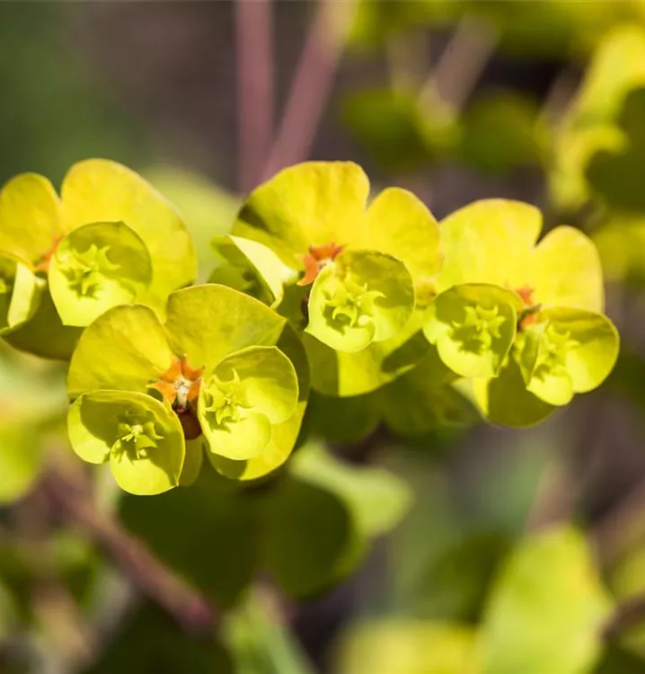 Euphorbia amygdaloides bildet gelb-grüne Blüten ab April.
