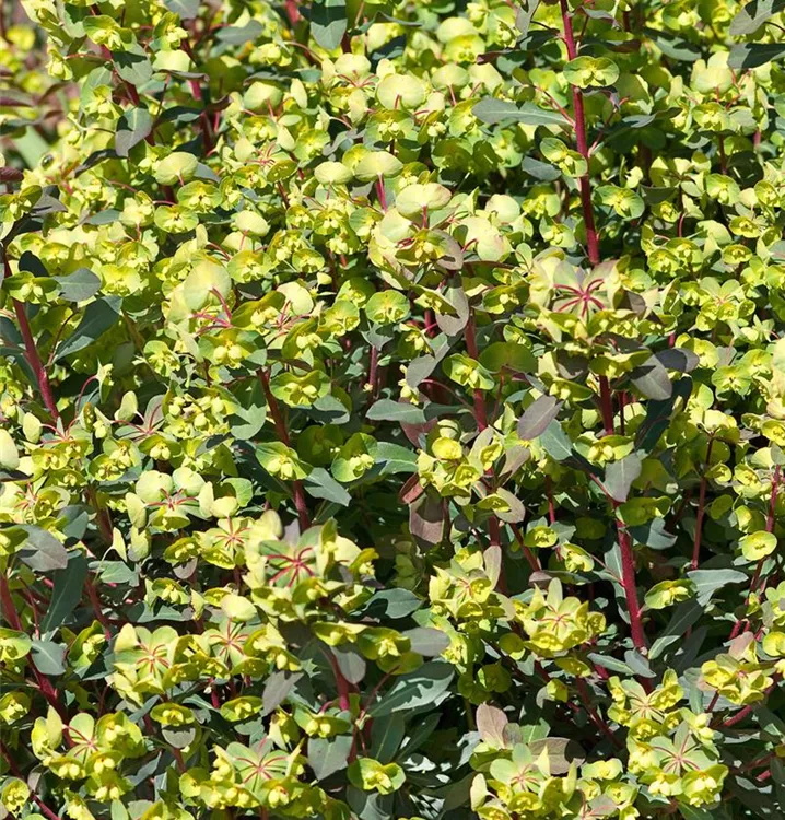 Euphorbia x martinii 'Kolibri' bildet gelbe Blüten ab Mai.