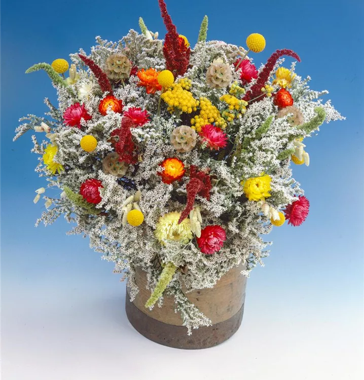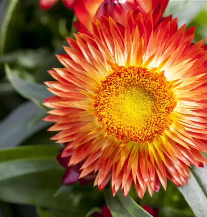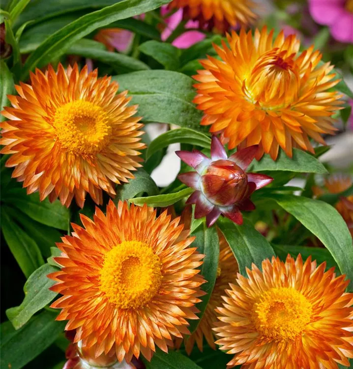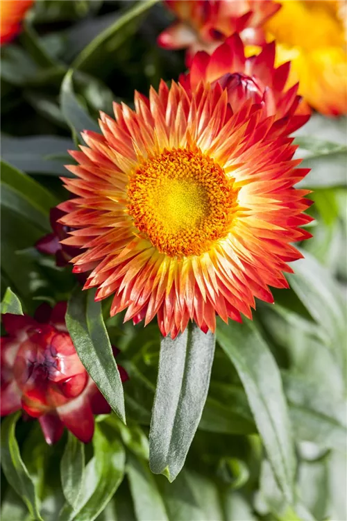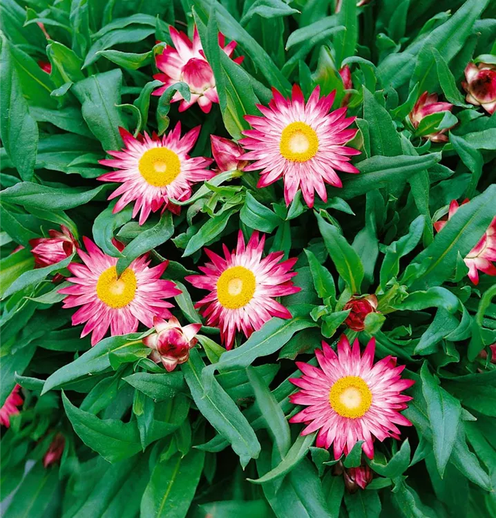 Die Garten-Strohblume (Helichrysum bracteatum) ist eine beliebte Pflanze für den Balkon. Die unzähligen Blüten erscheinen, je nach Sorte, in verschiedenen Farben die ganze Saison hindurch. Ein sonniger Standort und ein durchlässiges Substrat werden bevorzugt.