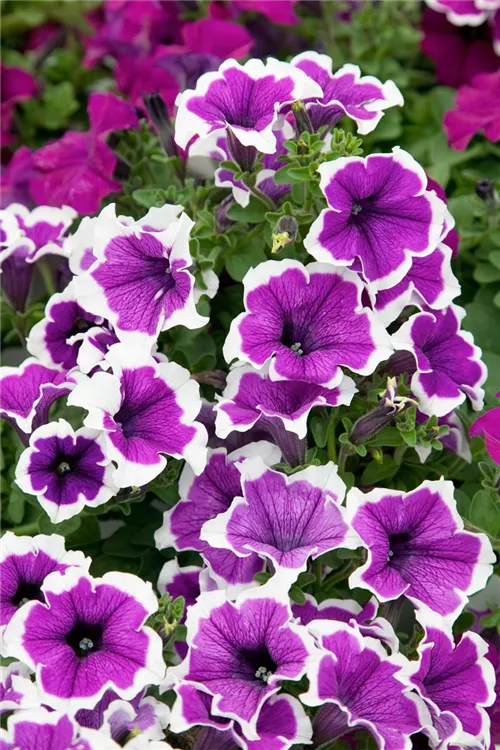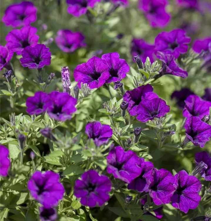 Die Petunie (Petunia) ist eine beliebte Pflanze für den Balkon. Die unzähligen Blüten erscheinen, je nach Sorte, in verschiedenen Farben die ganze Saison hindurch. Ein sonniger Standort und ein durchlässiges Substrat werden bevorzugt.