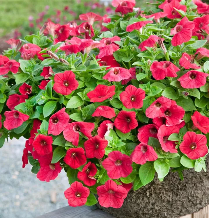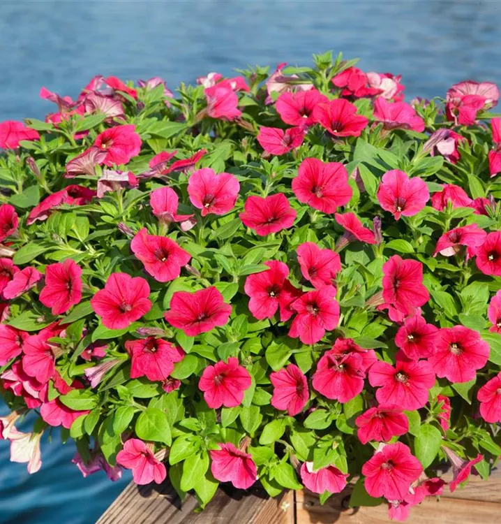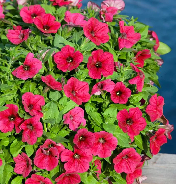 Diese kleinen Blühwunder sind bei vielen Pflanzenliebhabern die Nummer 1. Die Petunie kann ausgesprochen vielseitig verwendet werden und gedeiht im Beet, in Blumenkästen oder in Hängeampeln. Vom Mai bis in den Herbst hinein blüht die Petunie unermesslich in den schönsten Farben. Lassen Sie sich dieses Blütenfeuerwerk nicht entgehen und bieten der Pflanze einen Sonnenplatz! Im Halbschatten dürfte die Blütenfülle weniger üppig ausfallen. Länger Freude an den Blüten haben Sie auch, wenn Sie die Pflanzen vor Wind und Regen schützen.