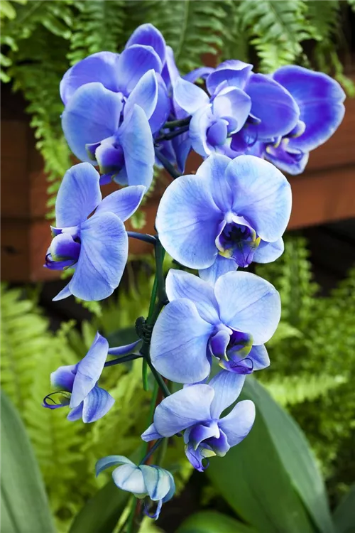 Phalaenopsis, blau bringt von Januar bis Dezember dekorative blaue Blüten hervor.