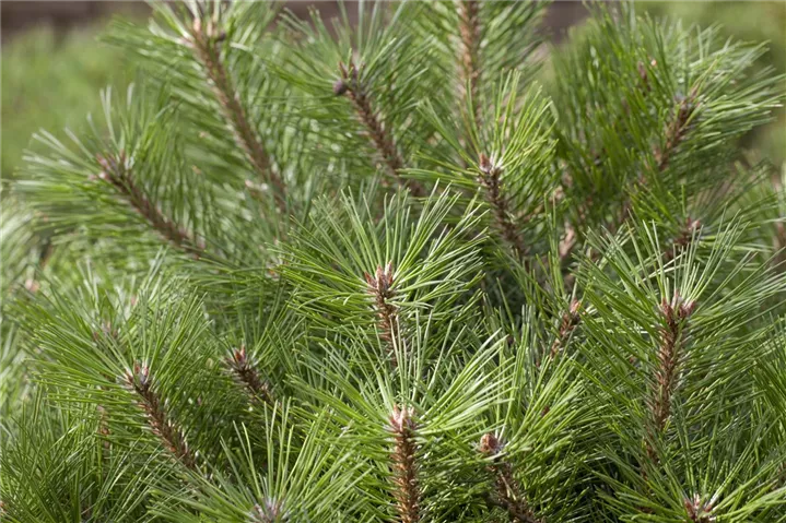 Die Zapfen von Pinus nigra 'Pierrick Brégeon' erscheinen ab September. Die jungen Zapfen haben eine grün-rote Färbung.