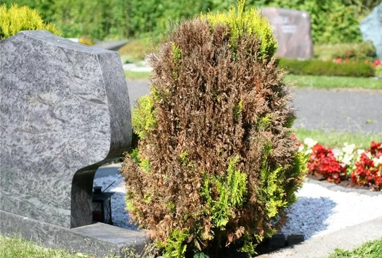 Welke- oder Absterbeerscheinungen an Lebensbäumen können verschiedene Ursachen haben, die leider nicht immer gut zu unterscheiden sind.
