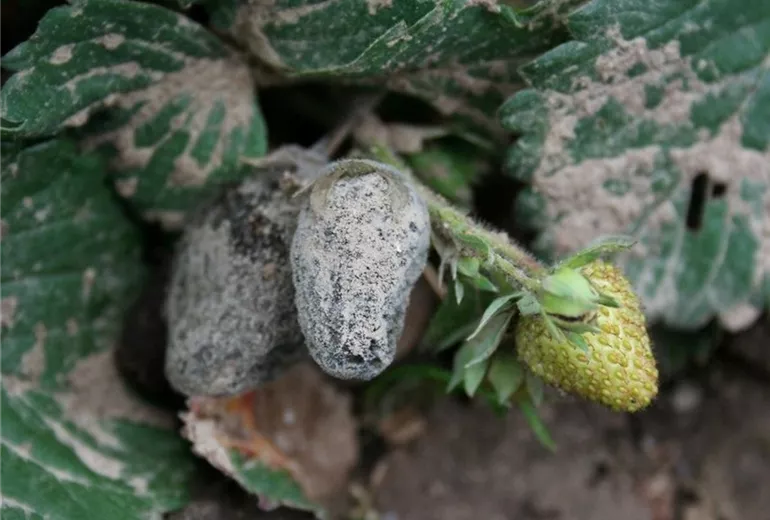 Zu eng stehende oder von Ausläufern und Unkraut eingedämmte Erdbeerpflanzen trocknen nach Niederschlägen schlecht ab. Bei der Neuanlage eines Beetes sollte daher ein möglichst weiter Pflanzabstand gewählt werden. Bei der im Garten üblichen Beetbreite von 1,20 m empfiehlt sich ein Reihenabstand von 80 cm und ein Abstand in der Reihe von 35 cm. Außerdem sollte die Erdbeerkultur nicht länger als zwei Jahre stehen.