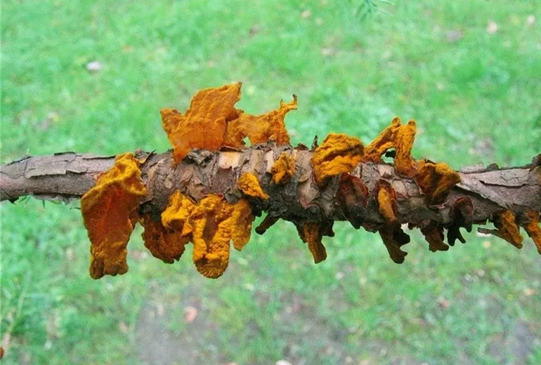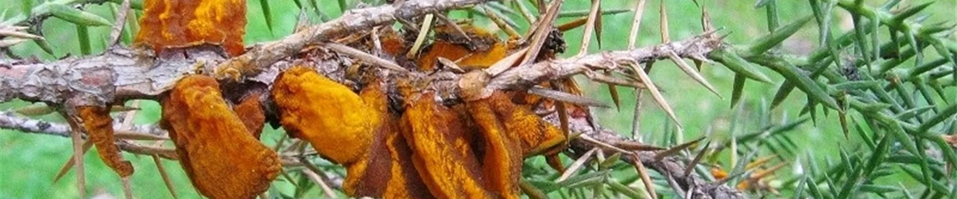 Der Wacholderblasenrost (Gymnosporangium sabinae) gehört zur Gruppe der Rostpilze. Besser bekannt ist er als Erreger des Birnengitterrosts. Auf gallertartigen Blasen bilden sich im Frühjahr Unmengen von Pilzsporen, die vom Wind auf Birnenblätter getragen werden und dort im Laufe des Sommers die auffällig orange bis rot gefärbten Flecke verursachen.