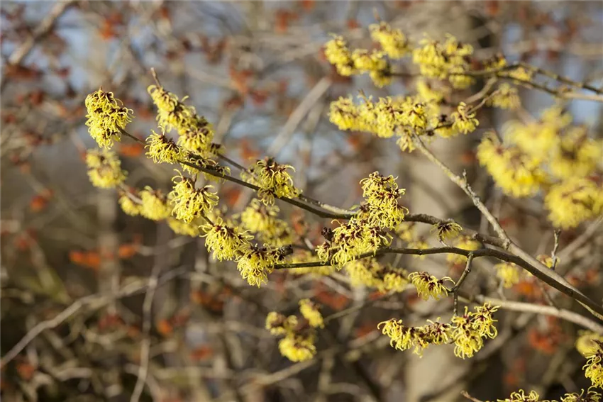 Die Zaubernuss ( Hamamelis -Arten) ist mit ihrer frühen Blüte in meist leuchtendem Gelb ein beliebter Zierstrauch. Aufgrund ihres sehr langsamen Wuchses ist sie auch für kleine Gärten geeignet. Geschnitten werden muss eher selten. Das Blütenholz ist sehr langlebig und sorgt für eine zuverlässige Blüte. Bei veredelten Arten entstehen teilweise Wildtriebe - diese sollten noch im grünen Zustand ausgerissen werden. Geschnitten werden sollten lediglich nach innen wachsende Triebe, um ein Verkahlen des Strauches vorzubeugen. Wird der Strauch zu groß, können Sie ebenfalls zurückschneiden, schneiden Sie dann einfach die längsten Triebe heraus und lenken Sie diese auf weiter innen stehende Triebe um. Der beste Schnittzeitpunkt ist nach der Blüte.
