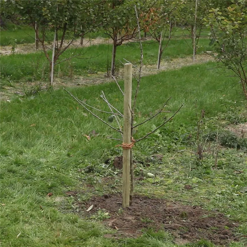 Der erste Schnitt sollte bereits direkt nach dem Einpflanzen des Baums erfolgen. Dies ist der sogenannte Pflanzschnitt. Damit schaffen Sie die besten Voraussetzungen für einen gleichmäßigen Kronenaufbau und gleichbleibenden Ertrag in den Folgejahren.