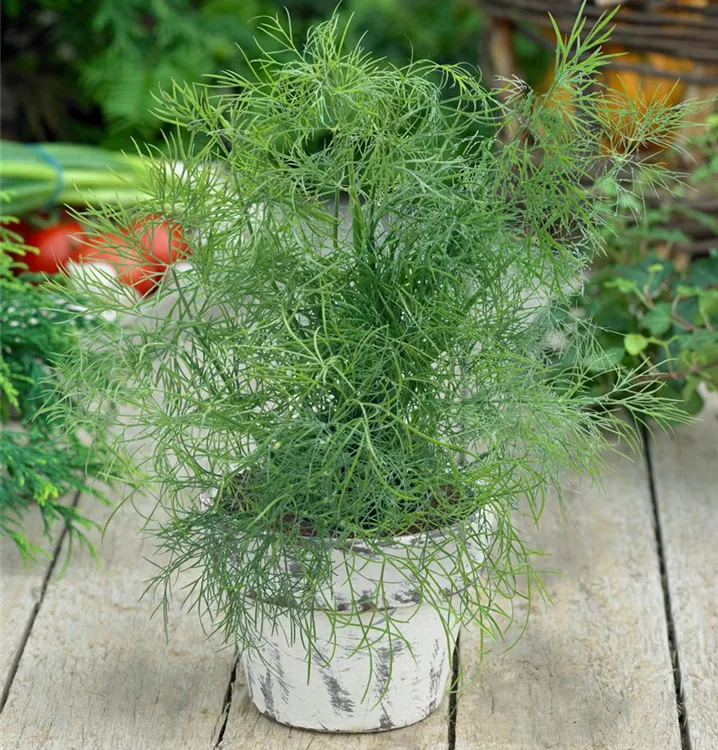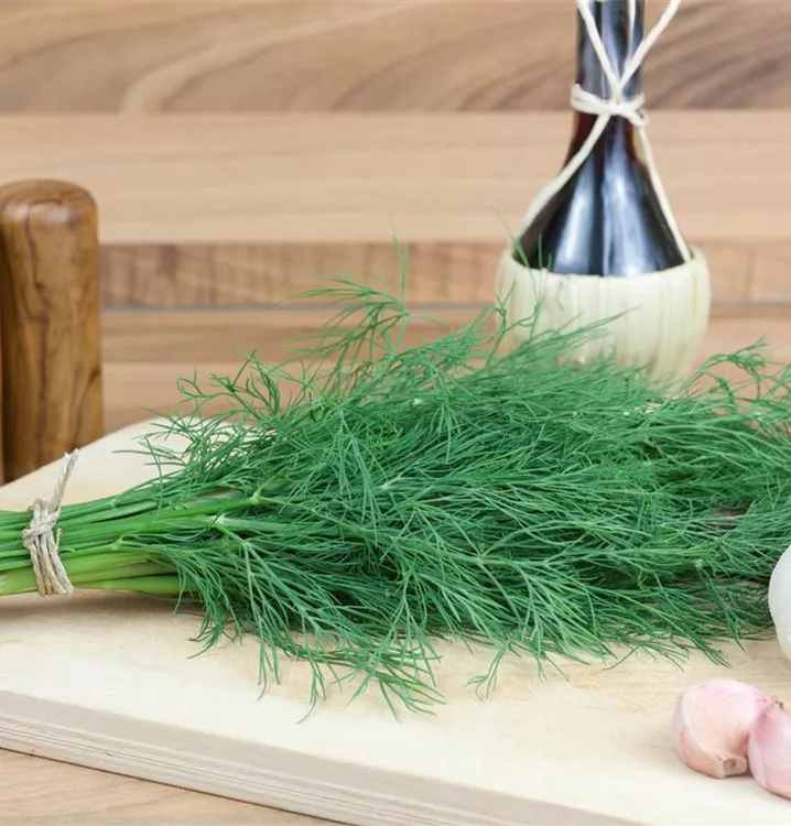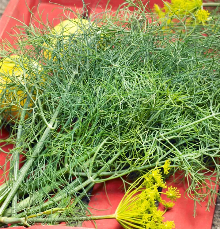 Der Garten-Dill (Anethum graveolens var. hortorum) ist eine Kräuterpflanze mit einem würzigen Geschmack. Seine dunkelgrünen Blätter sind tief geschlitzt. Für das optimale Wachstum des Garten-Dills werden ein sonniger Standort und durchlässiger, nährstoffreicher Boden benötigt.