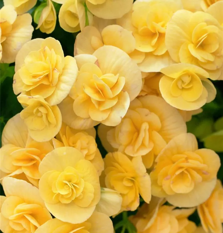 Die Begonie (Begonia elatior) ist eine gelb blühende Pflanze, die dreieckige, gesägte Blätter trägt. Ihre schalenförmigen Blüten erscheinen von April bis September. Diese kompakte Pflanze gedeiht am besten an einem sonnigen bis halbschattigen Standort.