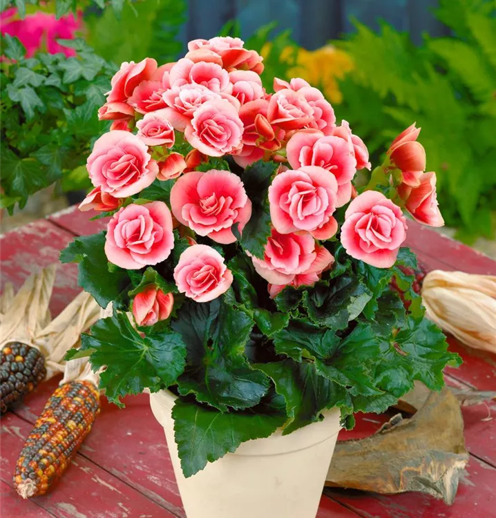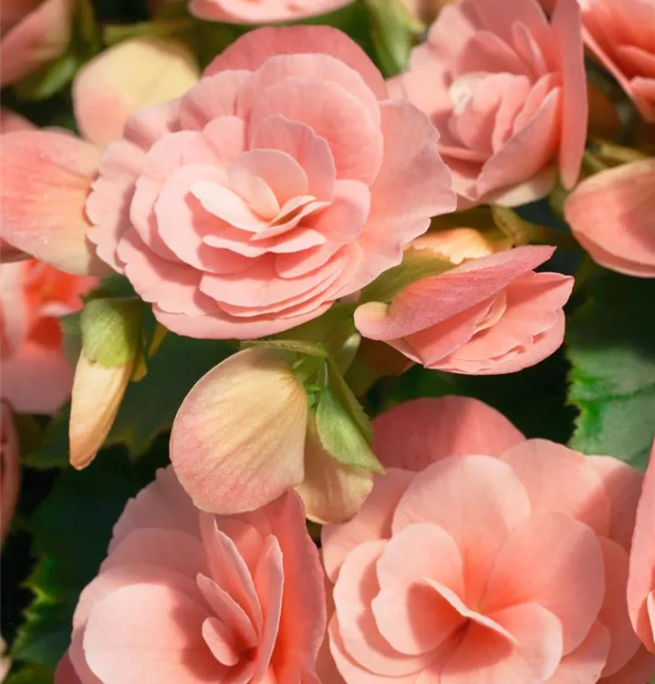 Begonia elatior, rosa bildet während der gesamten Saison zahlreiche schalenförmige, rosafarbene Blüten.