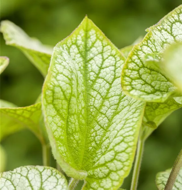 Hoher Blattschmuckwert. Die sommergrünen Blätter des Kaukasus-Vergissmeinnichts sind dunkelgrün, herzförmig.