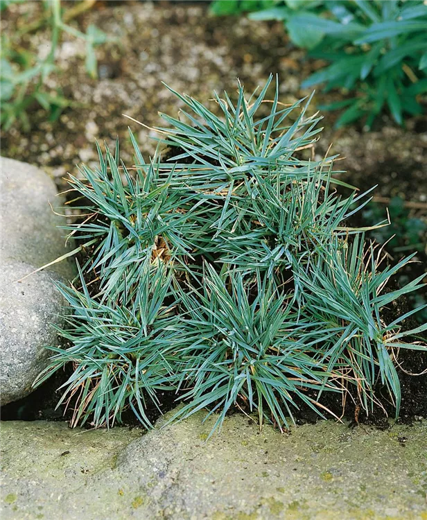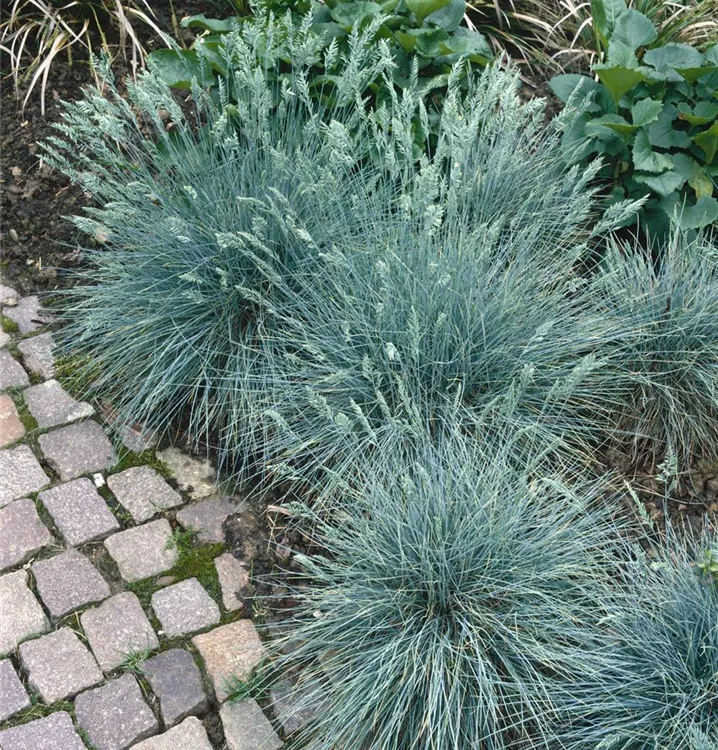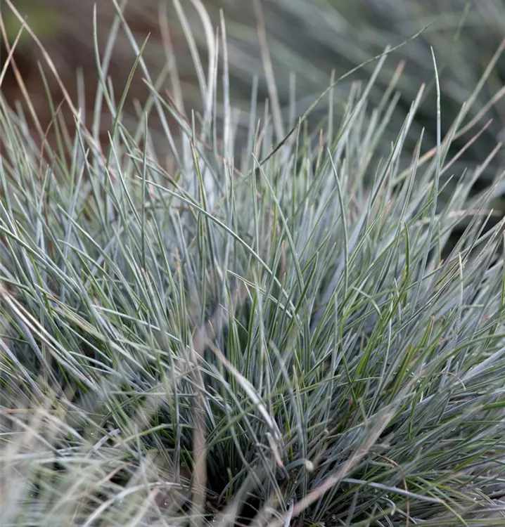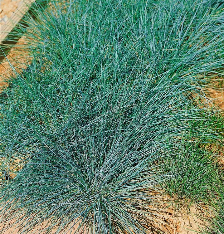 Der Blau-Schwingel (Festuca cinerea) ist mit seiner blau-grauen Blattfärbung ein dekoratives Gestaltungselement im Garten, welches sich an einem sonnigen Standort mit einem möglichst durchlässigen, sandigen Boden am wohlsten fühlt. Die cremeweißen Blütenwedel schmücken die kompakt und polsterbildend wachsende Pflanze ab Sommer. Bei günstigen Bedingungen erreicht dieses winterharte Gras eine Höhe von ca. 25 cm und wird bis zu 30 cm breit.