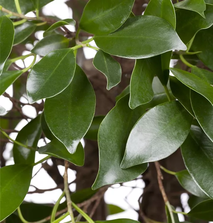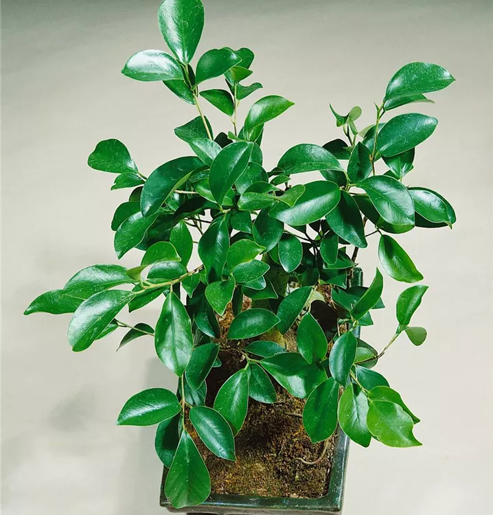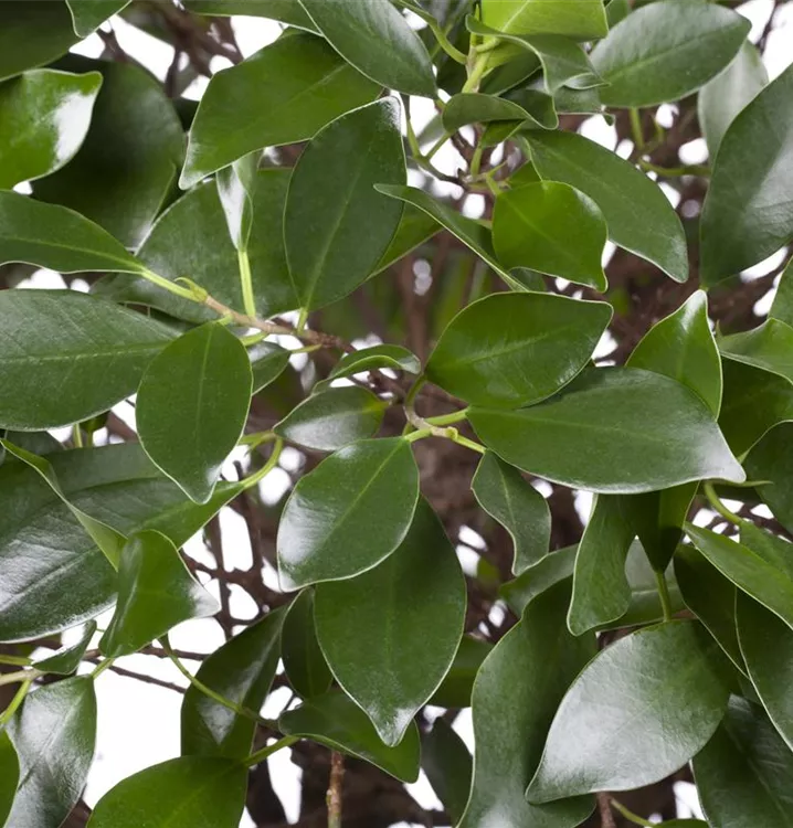 Die Chinesische Feige (Ficus microcarpa) trägt dunkelgrüne, eiförmige, glänzende Blätter. Diese aufrechte und verzweigte Pflanze gedeiht am besten an einem halbschattigen Standort.