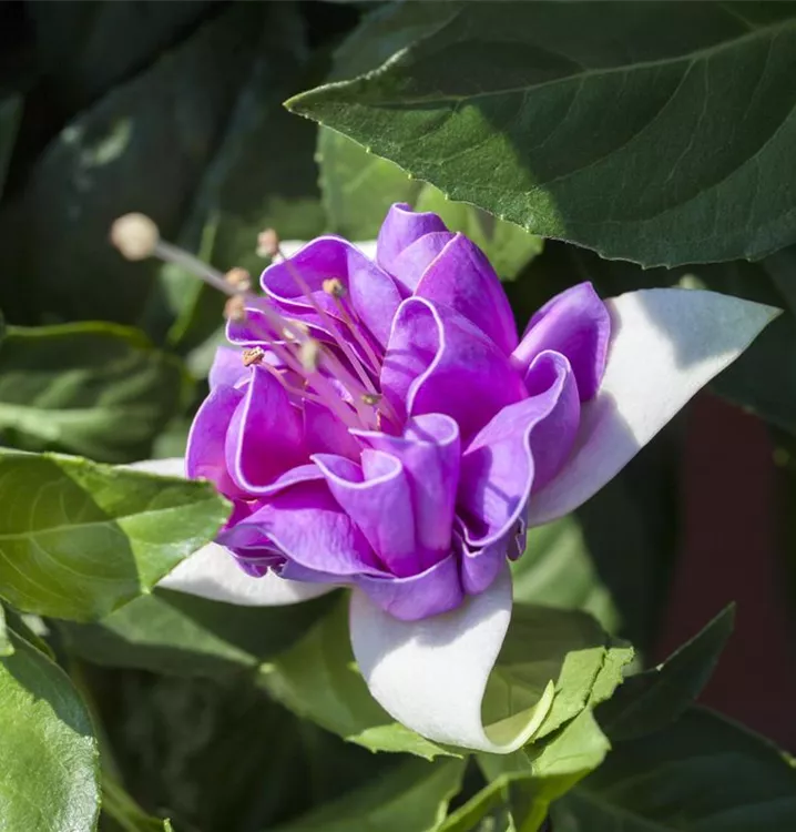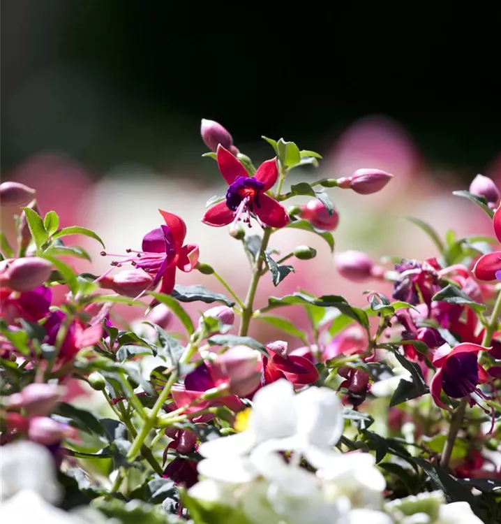 Die Fuchsie (Fuchsia) ist eine sehr beliebte Kübelpflanze. Ihre dekorativen Blüten sind glockenförmig und erscheinen von Juni bis September. Verwenden Sie bevorzugt die spezielle Kübelpflanzenerde, denn sie verdichtet sich über längere Zeit nicht.