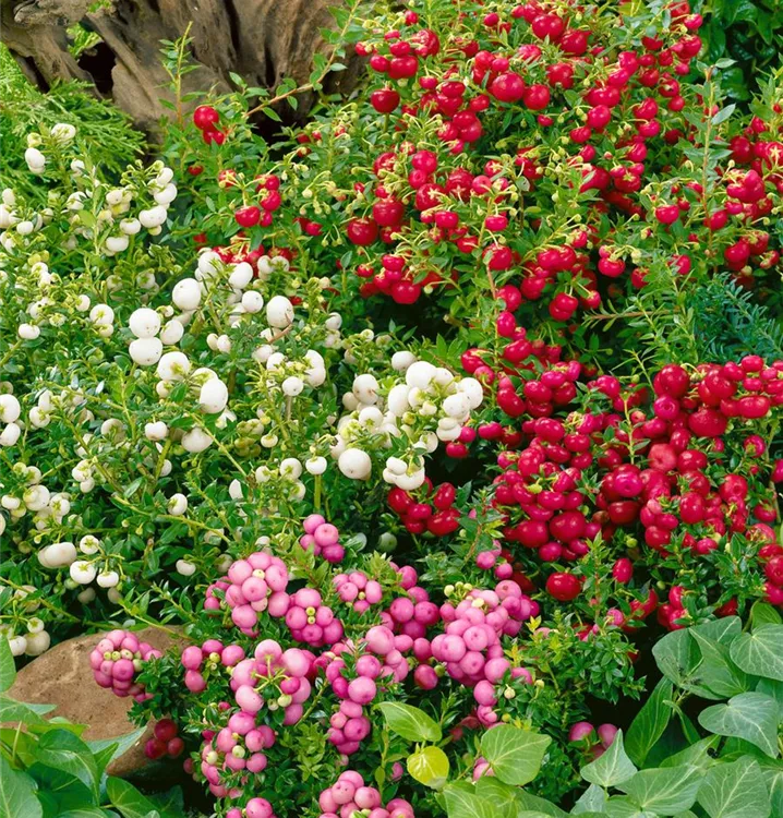 Die Torfmyrte (Gaultheria mucronata) ist ein buschiger, dichter Kleinstrauch mit dekorativen, rosaroten, runden Früchten. Die ballförmigen Blüten erscheinen je nach Sorte in verschiedenen Farben.