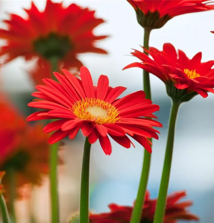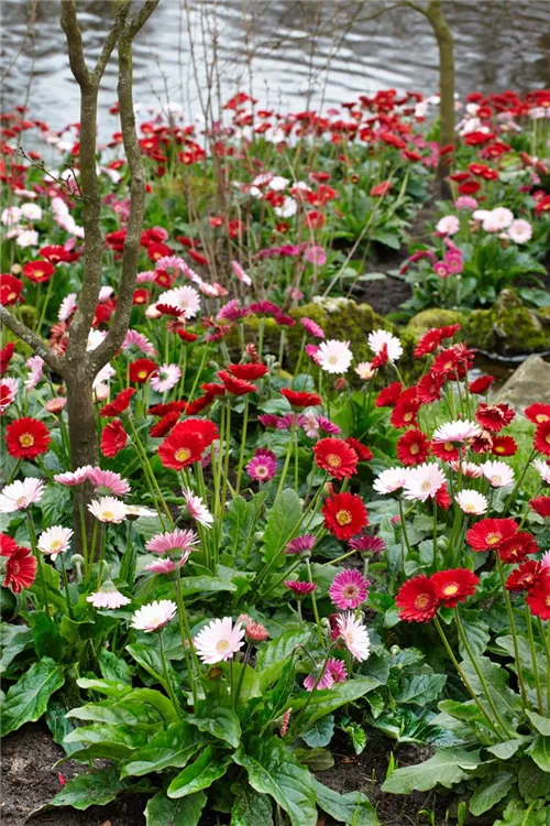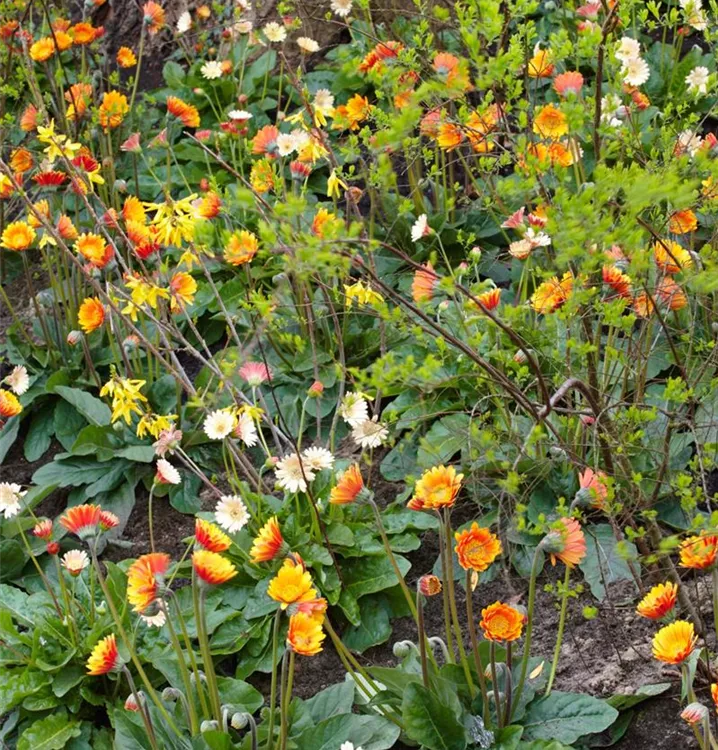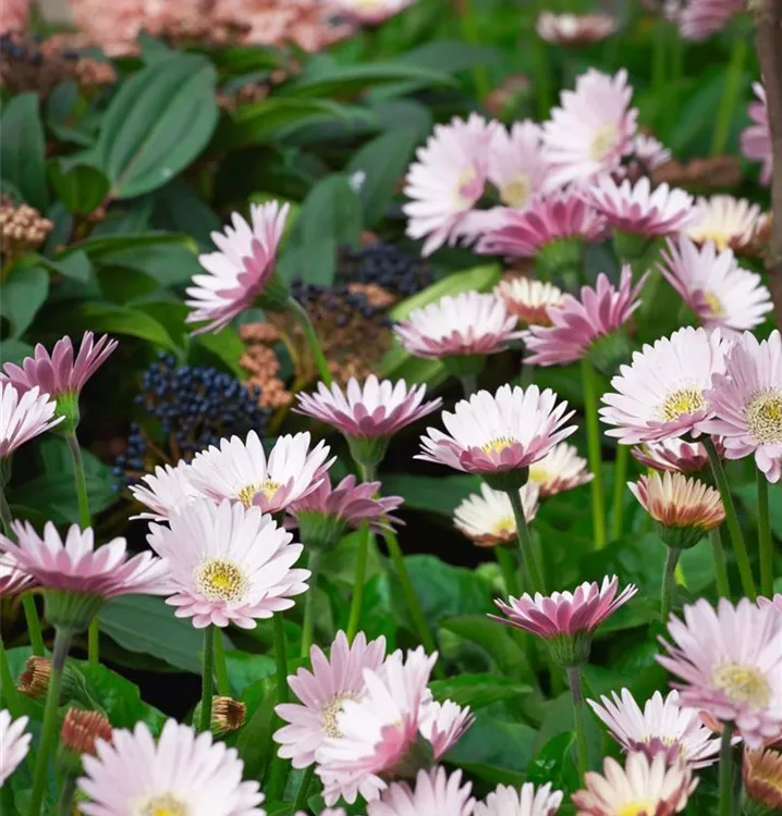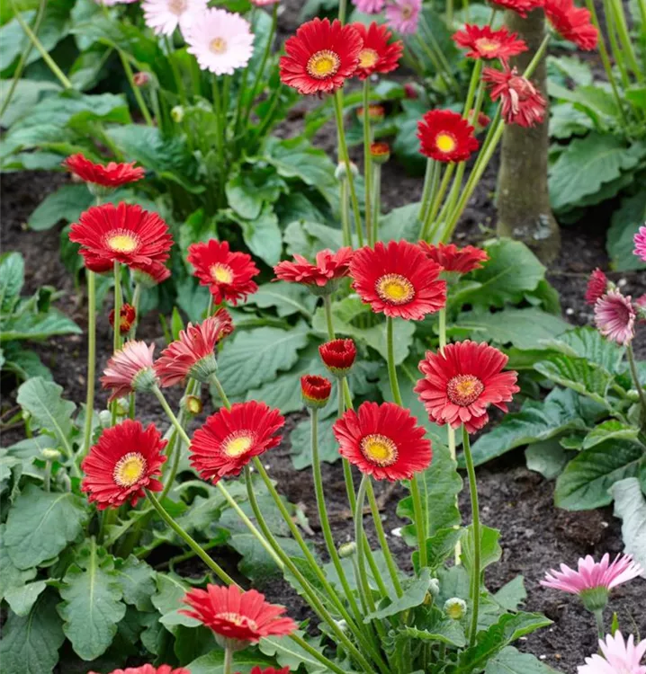 Die Winterharte Gerbera Garvinea<sup>®</sup> (Gerbera 'Garvinea'<sup>®</sup>) blüht über Monate hinweg. Je nach Sorte, erscheinen die dekorativen Blüten in den Farben Weiß, Rosa, Rot und Orange. Die mittelgrünen, lanzettlichen, glänzenden Blätter sind gelappt. Bevorzugt wird ein sonniger bis halbschattiger Standort und eine durchlässige Erde.