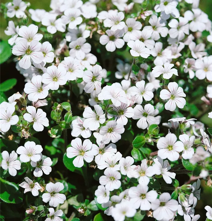 Gypsophila cerastioides bildet weiße Blüten ab Mai.