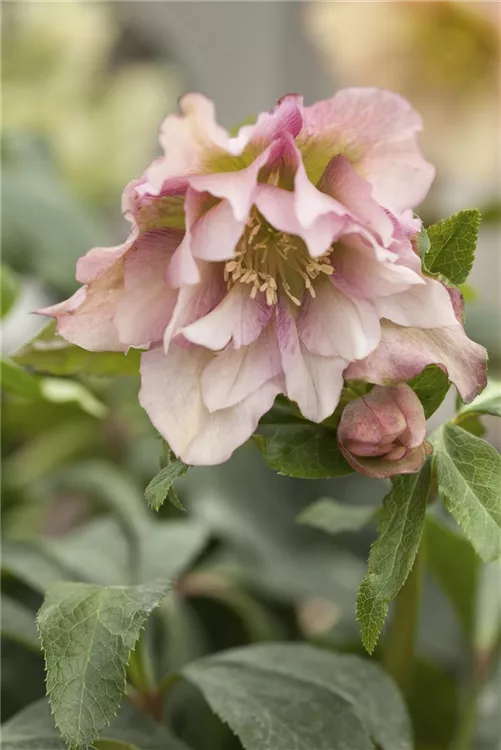 Die Frühlings-Nieswurz (Helleborus orientalis) ist eine aufrechte wintergrüne Staude, die, je nach Sorte, schalenförmige Blüten in verschiedenen Farben bildet. An einem sonnigen bis halbschattigen Standort mit durchlässigem, nährstoffreichem Boden erreicht sie gewöhnlich eine Höhe von ca. 40 cm und wird ca. 50 cm breit. Die Frühlings-Nieswurz ist gut frostverträglich.
