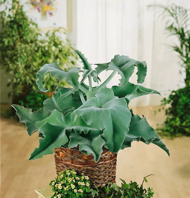 Die Elefantenohr-Kalanchoe (Kalanchoe beharensis) trägt silbergraue Blätter. Diese ausladende Pflanze gedeiht am besten an einem halbschattigen Standort.