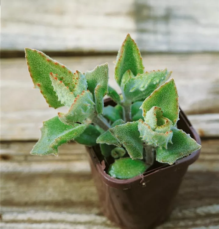 Die Blätter der Elefantenohr-Kalanchoe sind silbergrau.