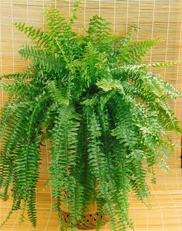 Der Schwertfarn (Nephrolepis exaltata) ist mit seiner mittelgrünen Blattfärbung ein dekoratives Gestaltungselement im Garten, welches sich an einem sonnigen bis halbschattigen Standort mit einem möglichst durchlässigen, nährstoffreichen Boden am wohlsten fühlt. Bei günstigen Bedingungen erreicht dieser Farn eine Höhe von ca. 1 m und wird bis zu 1 m breit.