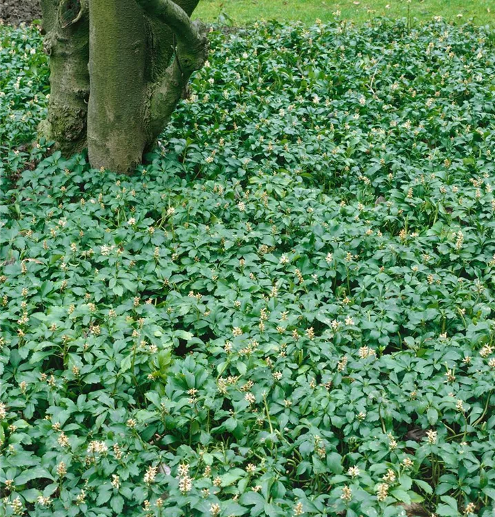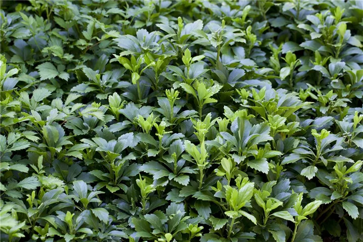 Pachysandra terminalis ist ein Flachwurzler und bildet, je nach Boden, ausladend verzweigte Wurzeln.