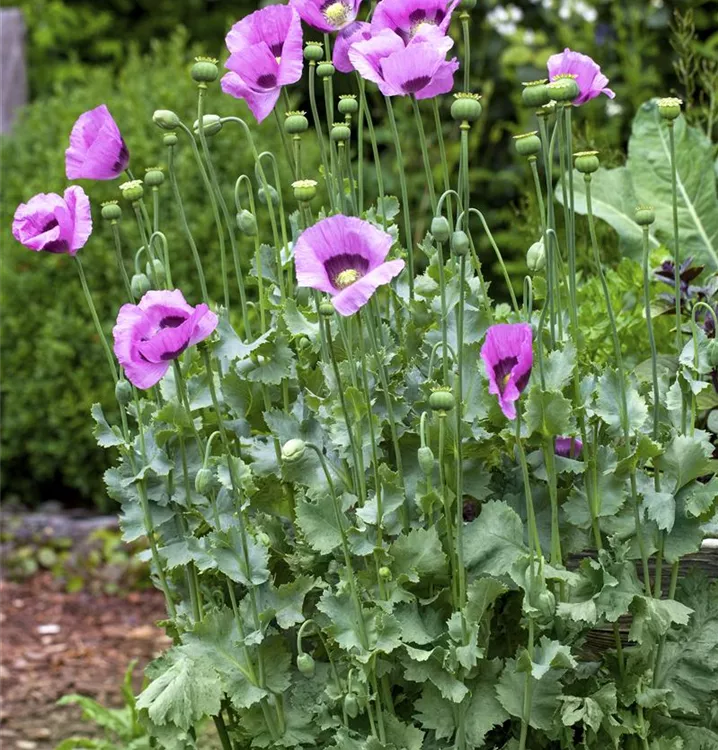 Der Mohn (Papaver) An einem sonnigen Standort mit durchlässigem, lockerem Boden erreicht er gewöhnlich eine Höhe von ca. 60 cm und wird ca. 80 cm breit.