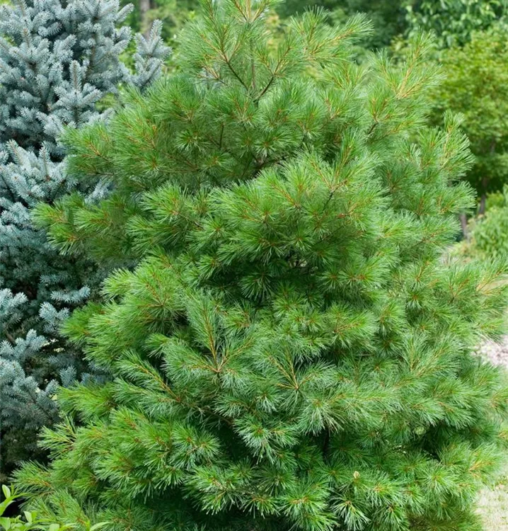 Weymouths-Kiefer 'Blue Shag' ist kegelförmig im Aufbau. Langsam wachsend.