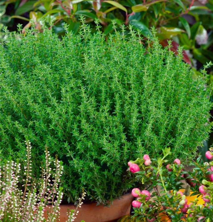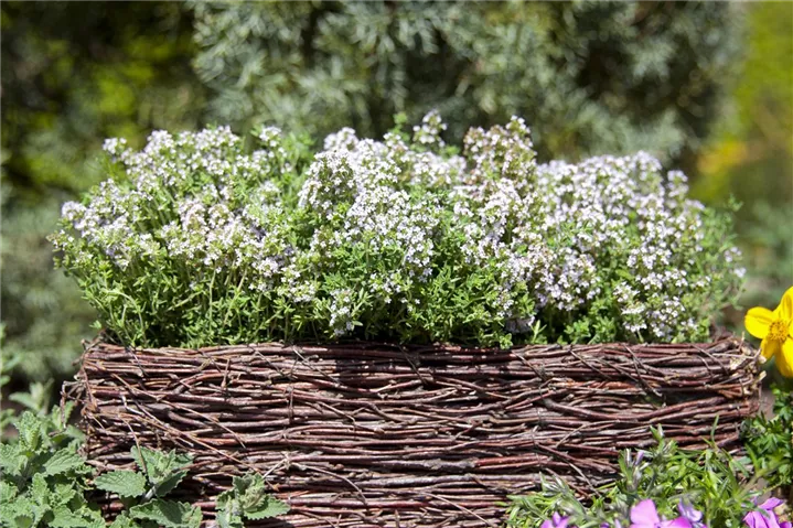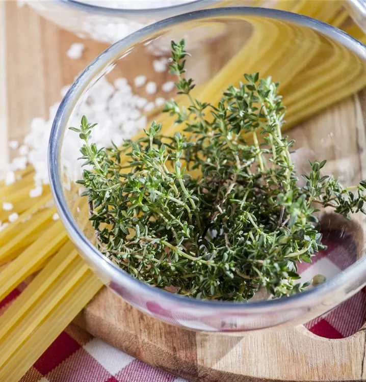 Der Echte Thymian (Thymus vulgaris) ist eine Kräuterpflanze mit einem aromatischen, würzigen Geschmack. Für das optimale Wachstum des Echten Thymians werden ein sonniger Standort und durchlässiger, nährstoffreicher Boden benötigt.