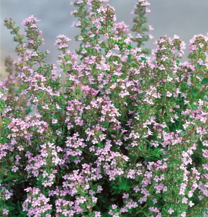 Der Garten-Thymian, rosa (Thymus vulgaris) ist eine Kräuterpflanze mit einem aromatischen, würzigen Geschmack. Für das optimale Wachstum des Garten-Thymian, rosas werden ein sonniger Standort und durchlässiger, nährstoffreicher Boden benötigt.